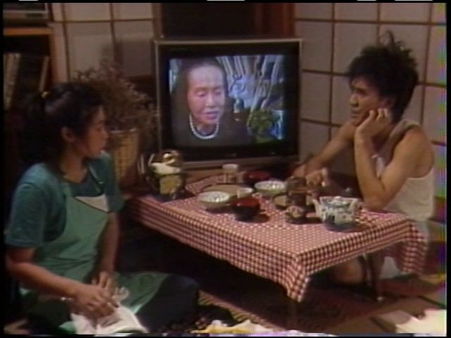 Enfin le troisième mélodrame domestique de cette trilogie, Great Mother (SACHIKO), tout en évoquant la relation mère-fille, expose la perte d'individualité de l'enfant face aux parents, en y incluant une relation conjugale mise en échec par un rapport à la mère fusionnelle. Coincée entre une mère possessive, infantilisante, en quête de jeunesse [1], et un mari abusif, Sachiko se débat à travers son existence quotidienne. Sa mère est vue comme omnisciente et omniprésente aux cotés de sa fille. Encore une fois le poste télévisuel revêt le rôle d'une sur-présence métaphorique et appuie le caractère dramatique de la narration : subconscient matérialisé, la mère coiffe sa fille, la maquille, cuisine avec elle, ou regarde le mari faire l'amour à une Sachiko détachée et indifférente. Shachiko est l'objet de sa mère, sa poupée, toutes deux sont la source de la frustration d'un mari désemparé, réfugiant son impuissance dans l'alcool face à cette situation. La description de Mako Idemitsu du circuit psychologique familial est à la fois poignante et ironique : l'incroyable intimité d'une relation mère-fille, qui exclut et aliène le mari, devient, en même temps qu'elle les provoque, un refuge contre les abus de ce dernier.